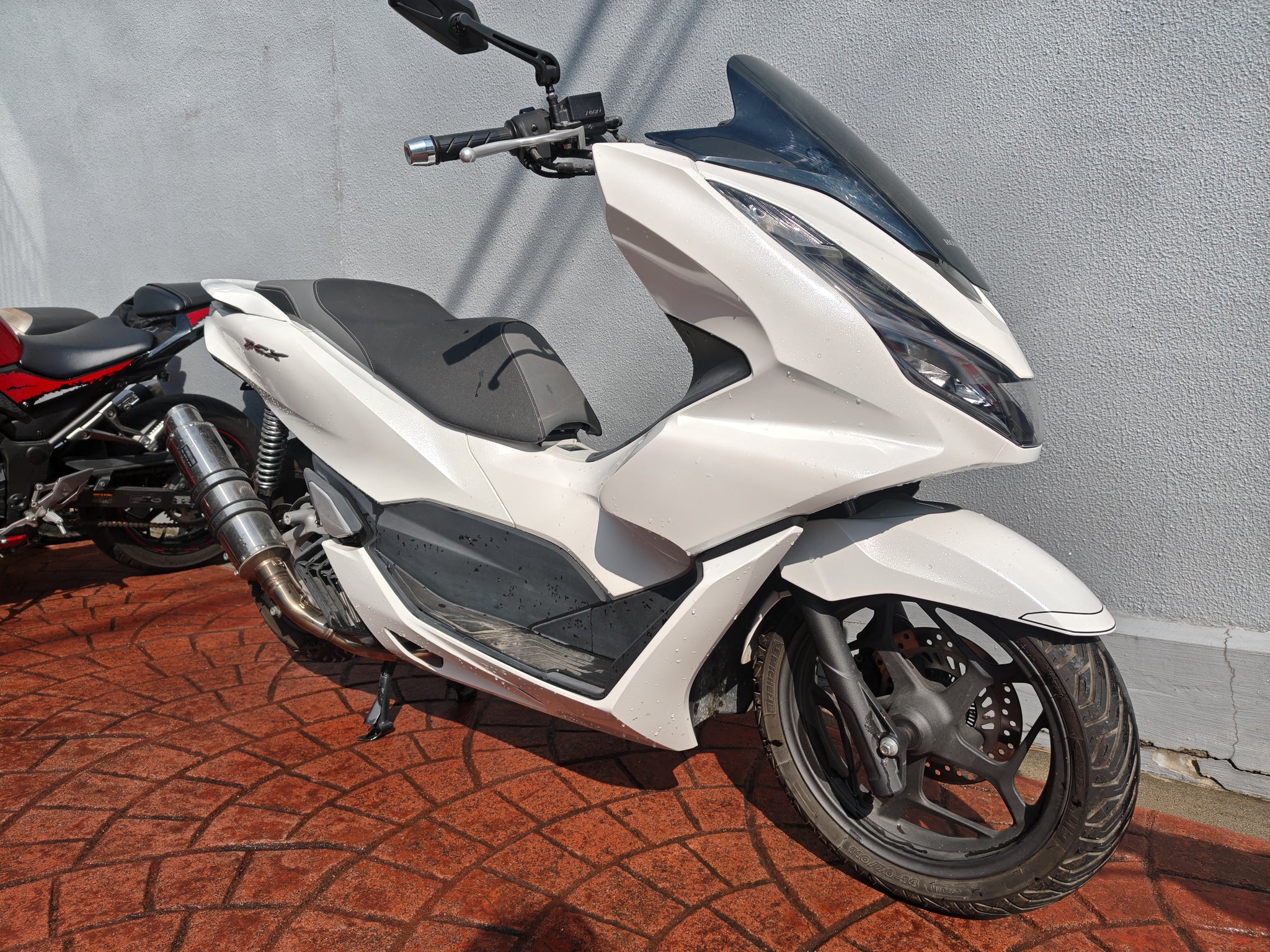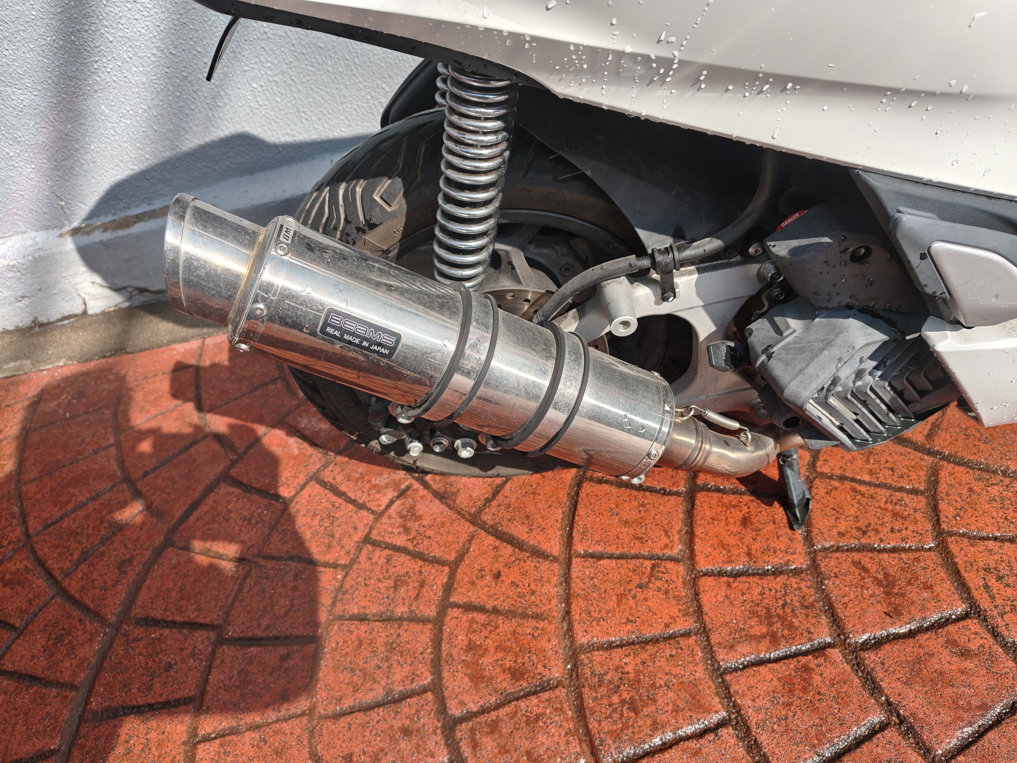 フェンダーレス仕様にミラーなど交換しています。タイヤも太く安定性なども良好な車両でございます。マフラーはBEMSマフラーに変更済